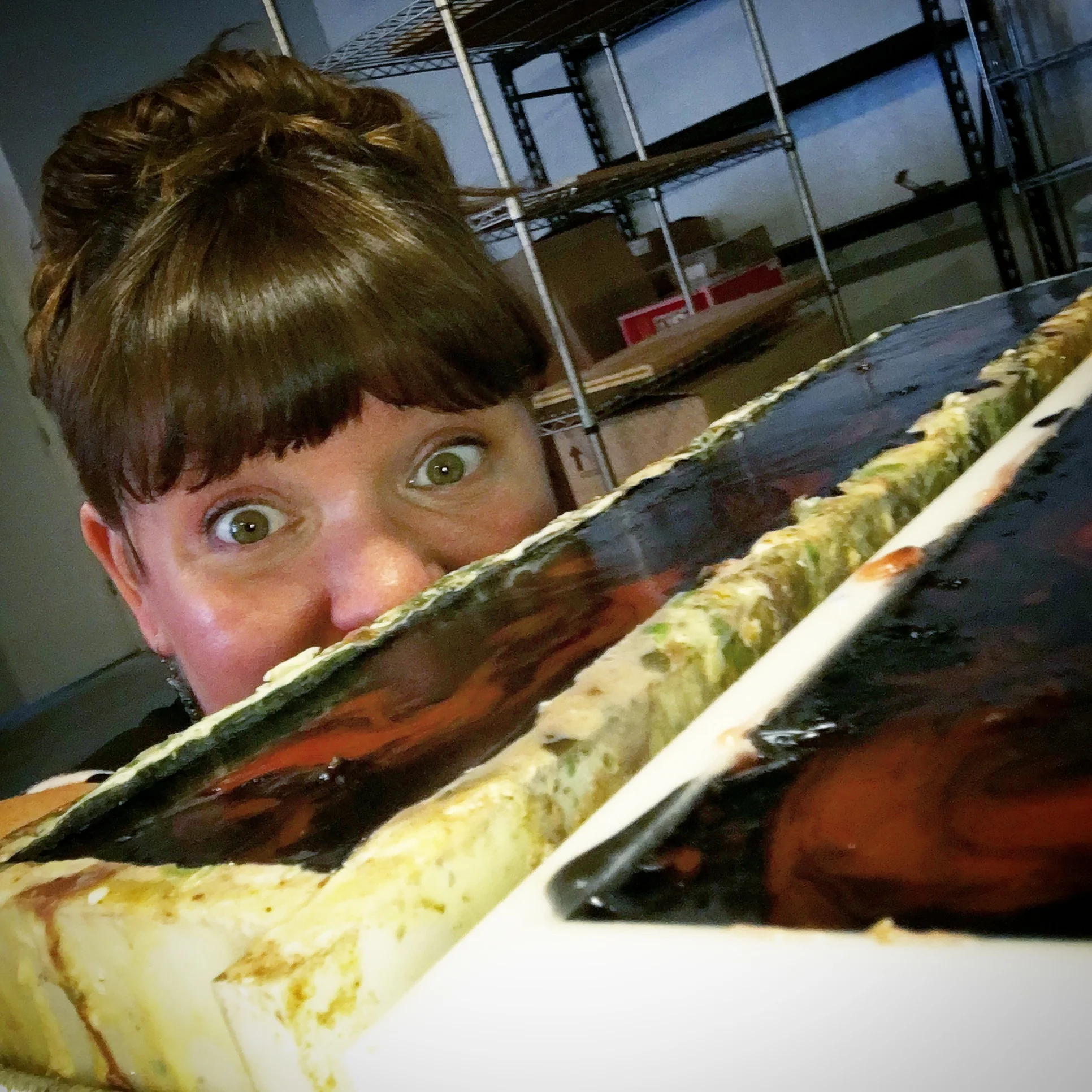 Freshly swirled sandalwood-Patchouli in the making! PS the deep red color is from the mineral hematite and will make for fun red suds. โค๏ธ๐คโค๏ธ